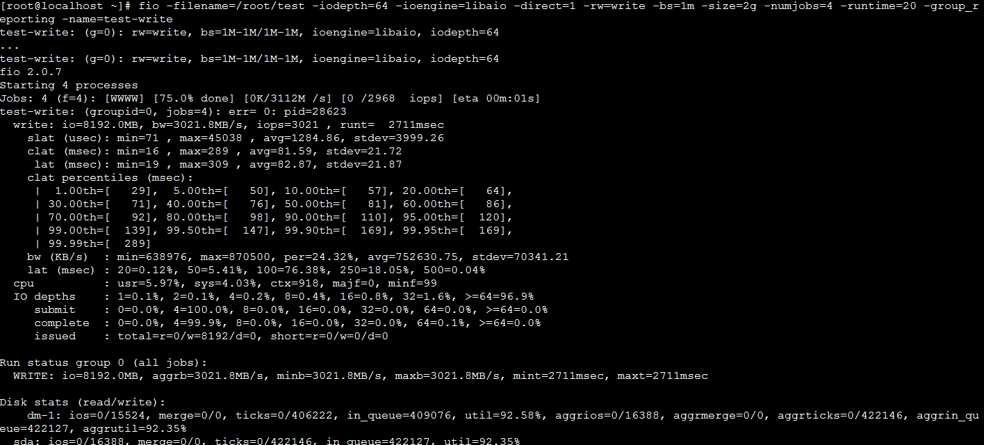 fio硬盘读写测试 1、首先安装fio 2、cd切换到需要测试的磁盘分区的目录,比如/dev/vda1挂载到的/home目录 # 测试 …